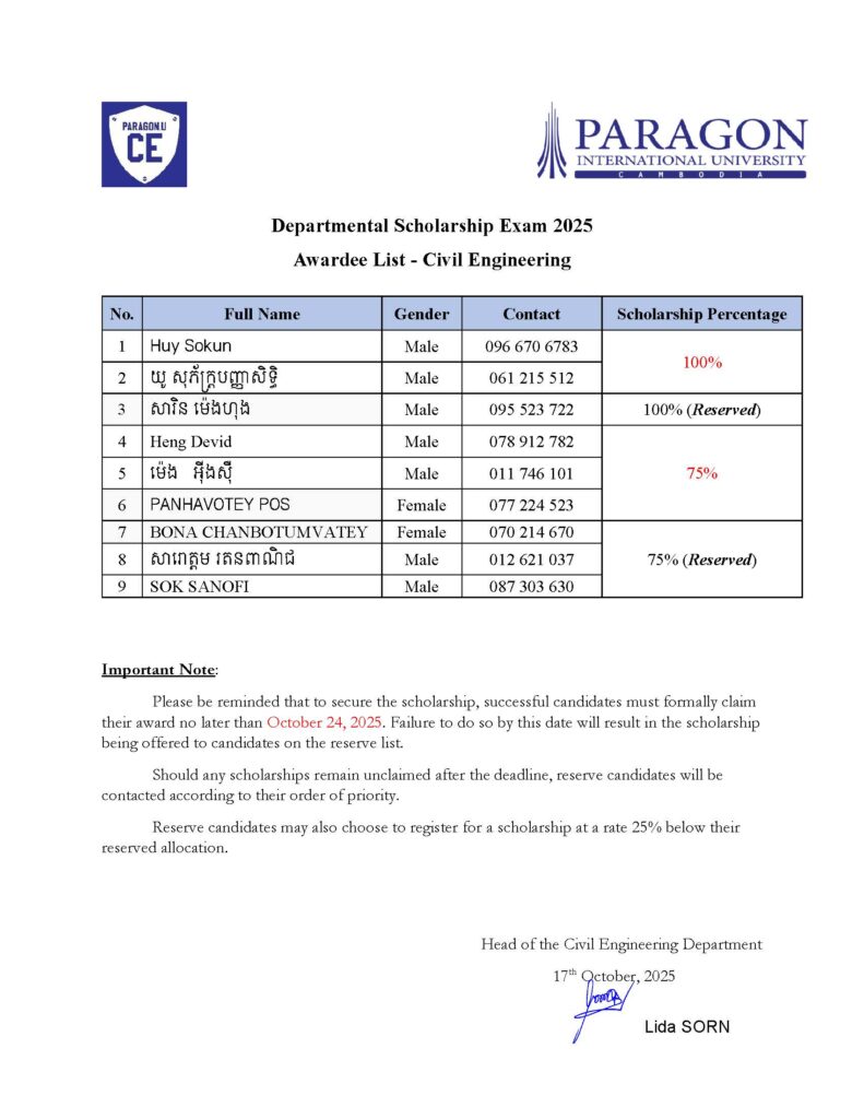 Successful candidates must claim their scholarship by November 10, 2025, to secure their award. After this date, any unclaimed scholarships will be offered to reserve candidates according to their order of priority.